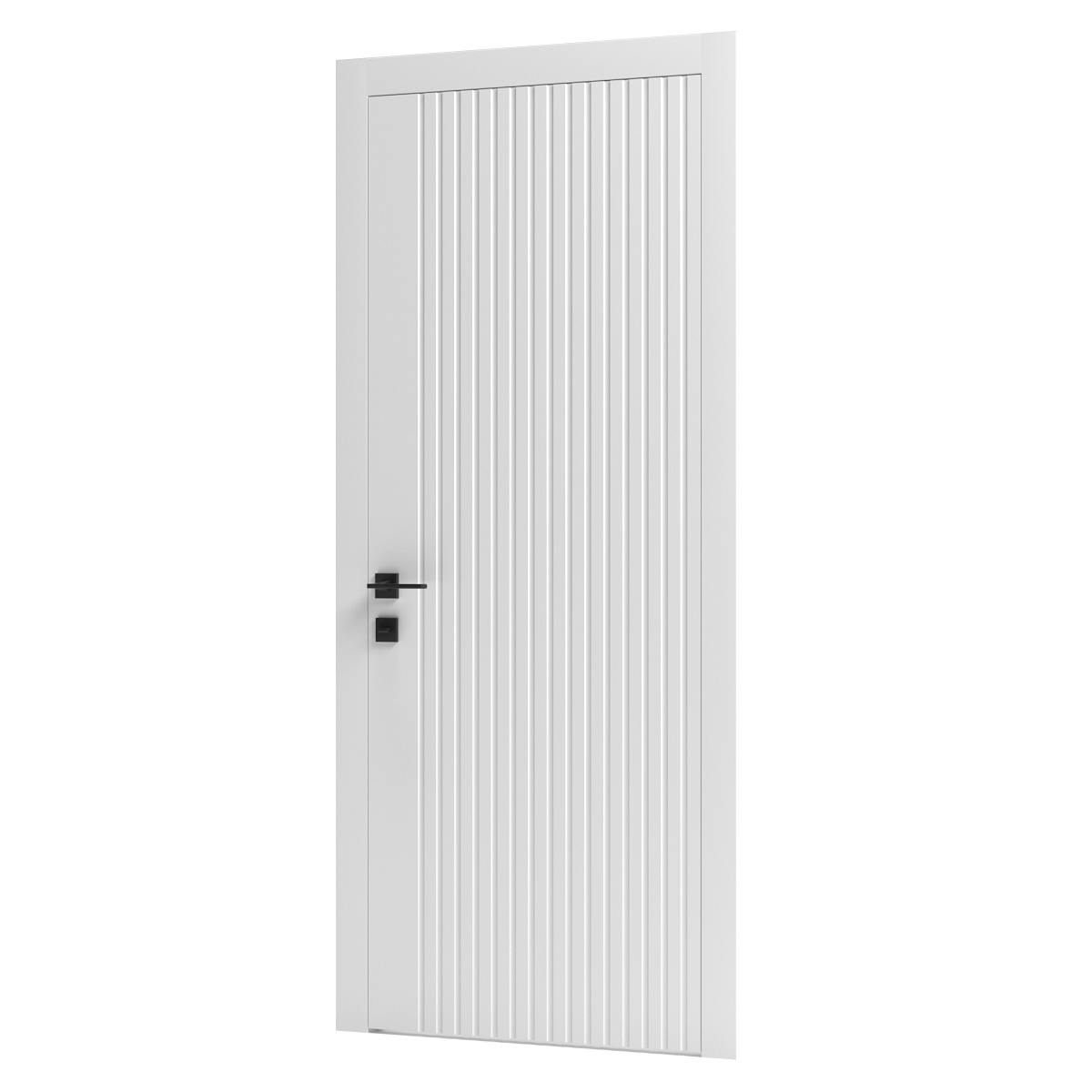 Модель міжкімнатних дверей UD 17 вирізняється рівномірним вертикальним фрезеруванням з однаковим кроком, яке розташоване на більшій частині полотна, але не доходить до зони ручки з лівого боку. Такий дизайнерський прийом створює цікавий асиметричний акцент, зберігаючи водночас відчуття ритму та впорядкованості.