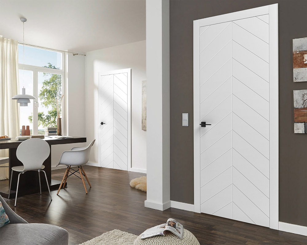 - Лицьові лиштви в один рівень із полотном, що робить двері більш витонченими, без зайвих заглиблень і додає дизайну цілісності.